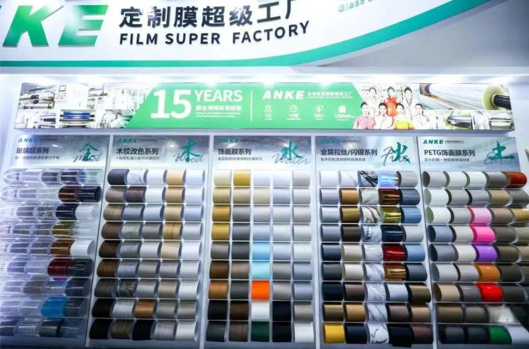 Bu sergide, ANKE, "all-scenario özelleştirilmiş filmler için süper fabrika" olarak konumlandırıldı, 2.4m ultra geniş cam dekoratif filmler de dahil olmak üzere beş yeni ürün ve yıldız ürünü sergiledi, biyonik ahşap kaplama dekoratif filmler, mobilya renk değiştiren filmler ve 3D modül tuğlaları, mutfak ve banyo alanlarının "film estetiği" ni yeniden tanımlıyor.